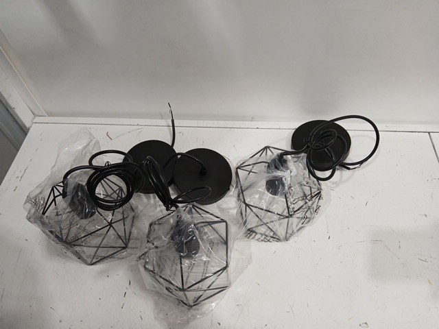 2pk CADELON Retro Cage Metal Hanging Lighting Fixture with Adjustable Cord - height adjustable 47.2" - black
