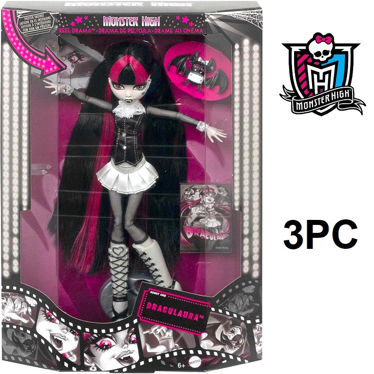 Monster High Reel Drama Doll Draculaura in Black - grey/pink (model: HKN27)
