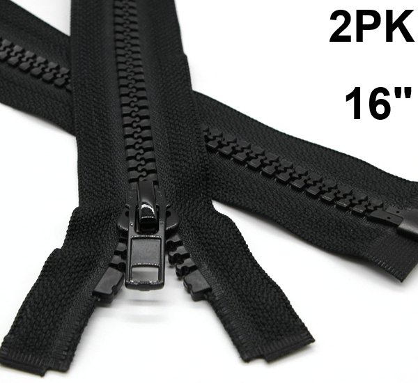 2PK Leekayer Separating Jacket Zippers for Sewing - 16" - BLACK (MODEL: #5-2PC-16")