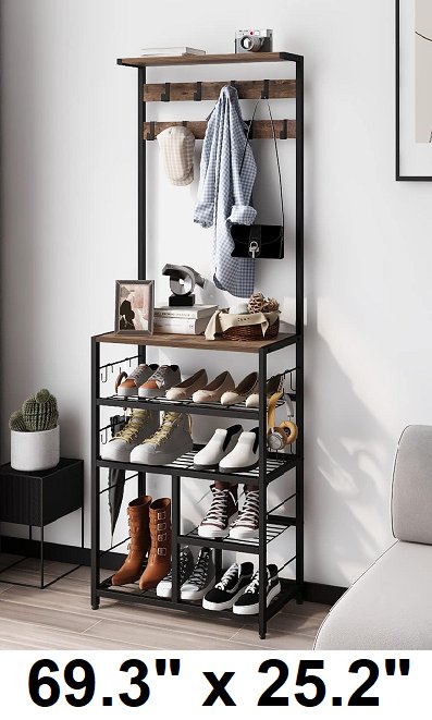 GiftGo 3-in-1 Standing Coat Rack WITH Storage Shelves - 69.3" X 25.2" - BROWN/BLACK