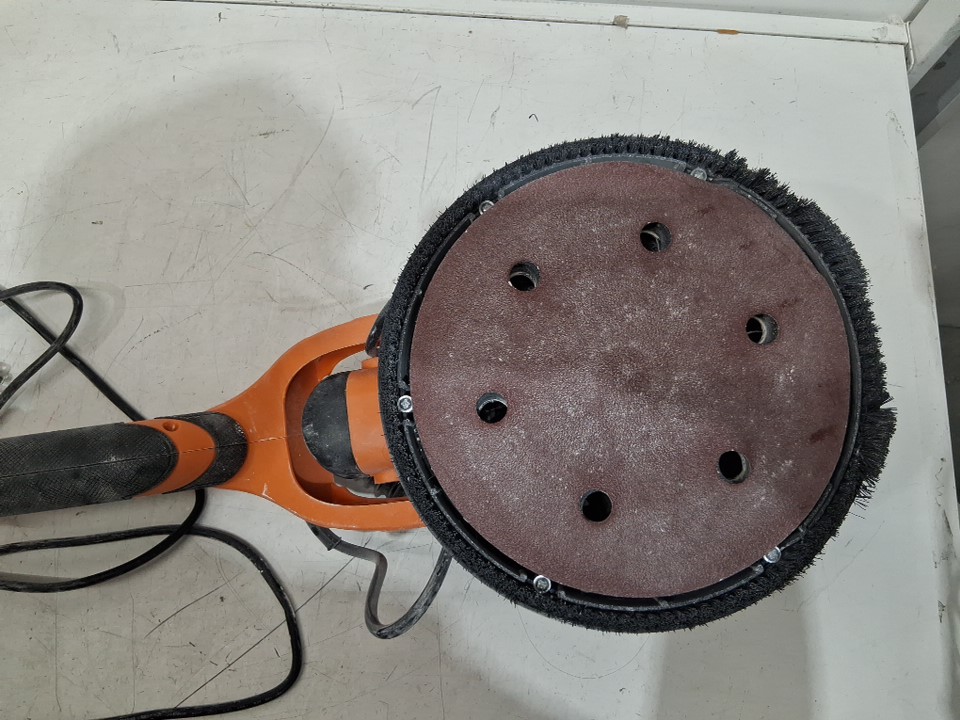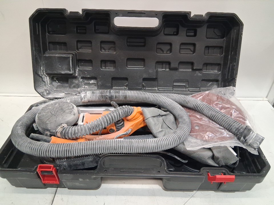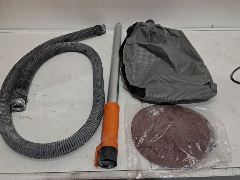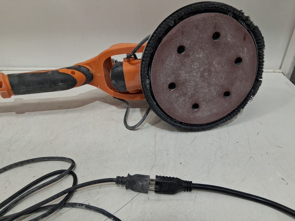 Covered in drywall dust. Tested for power. No light to indicate powered on, but the head spins properly when powered.