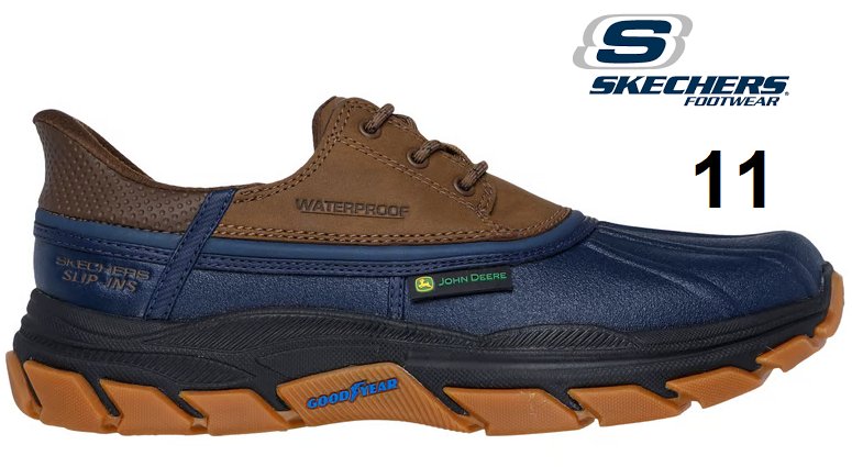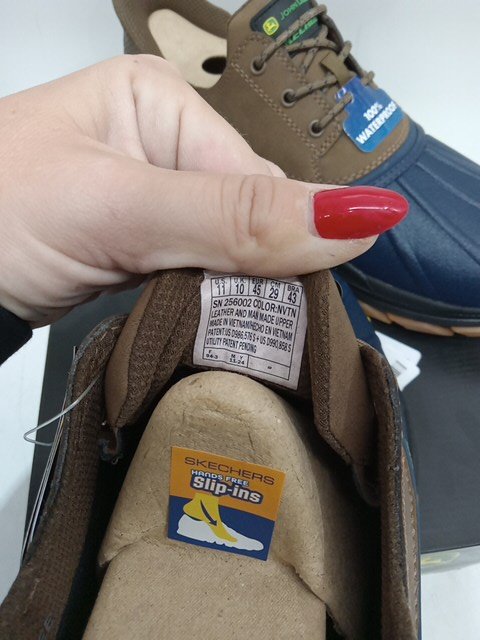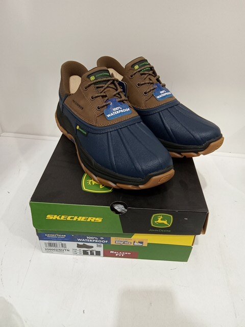 MENS SKETCHERS JOHN DEERE SLIP IN WATER PROOF Respected - Tanzier BOOT - SIZE 11 - NAVY/TAN