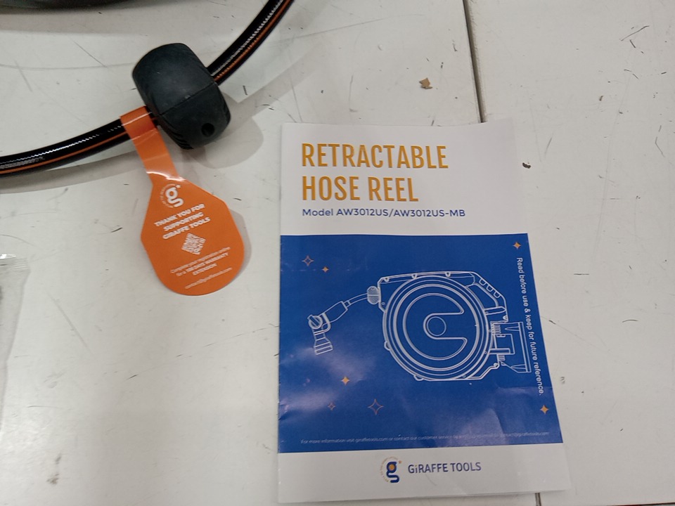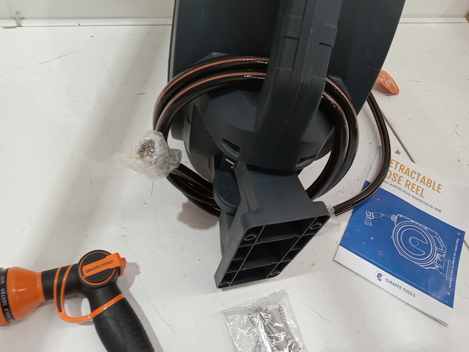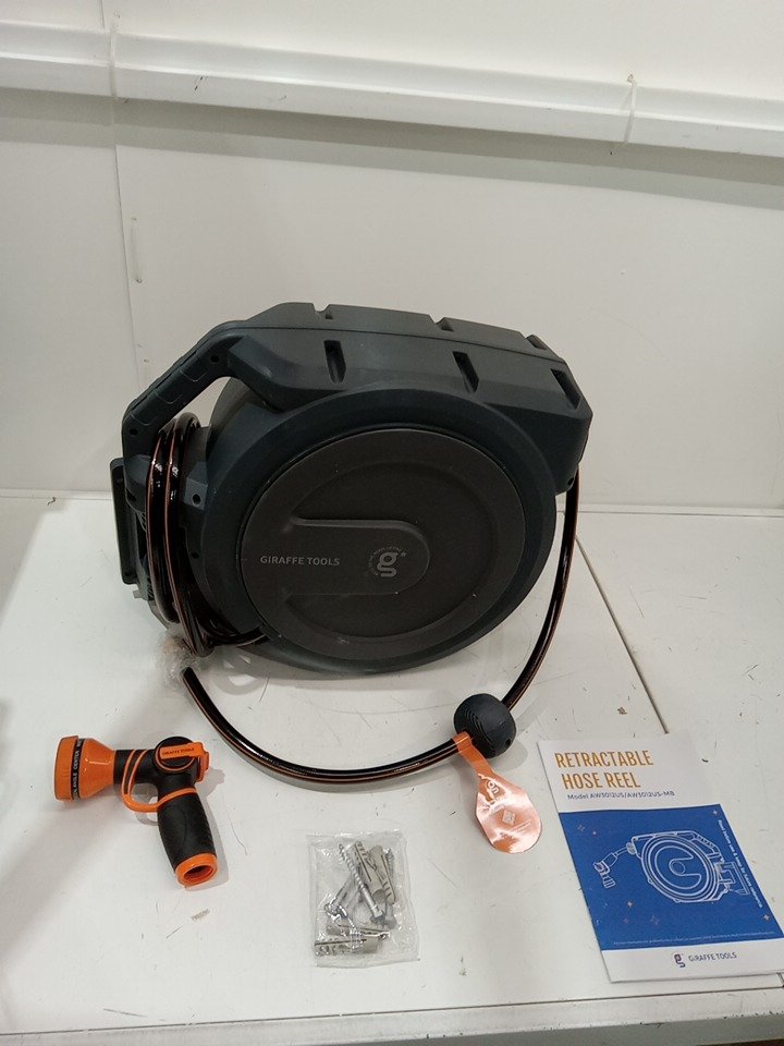 Giraffe Tools Wall Mounted Garden Hose Reel Retractable WITH Reel Automatic Rewind - 1/2" x 100ft - Dark Grey (MODEL: AW3012us-mb)