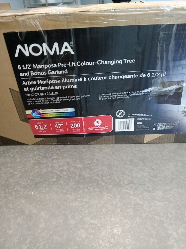Noma pre-lit color changing mariposa Christmas tree with garland - 6.5FT tree/9ft garland - Warm White/Multicolor LED - green(Model: 151-8403-4)