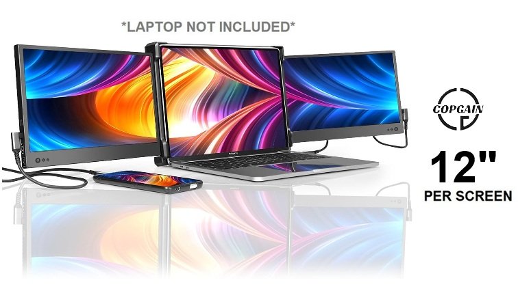 ‎CopGain Laptop TRIPLE Screen Extender Monitor WITH 2X 12" FHD 1080P Portable Monitor for Laptop (model: p2)