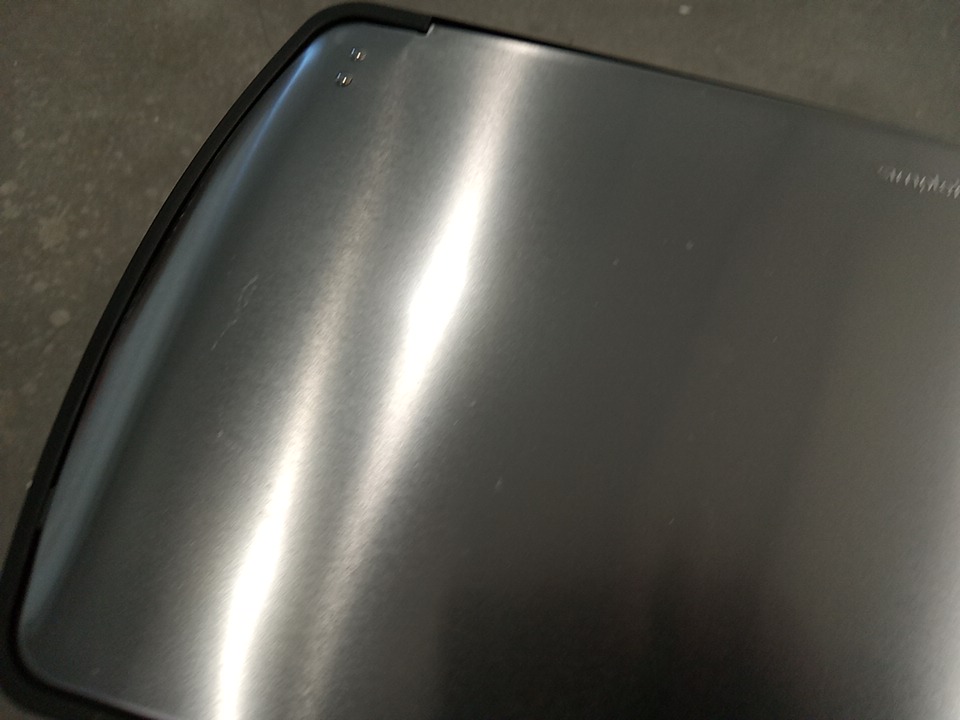 There is light amount dirt marks and scuffing present on lid from shipping/handling.