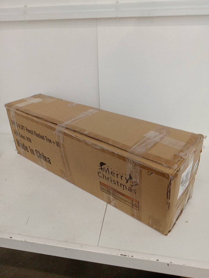 sharecon Prelit Pencil Christmas Tree - 6ft - white (model: 6-6.5ft pencil flocked tree + ul)