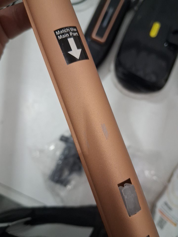 it has some stains on the streamer, and the pads shows the sign of previous use (see photos).