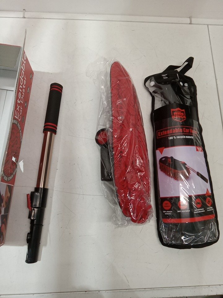 ride kings scratch free car duster with adjustable height - 27"-36" - gold/red