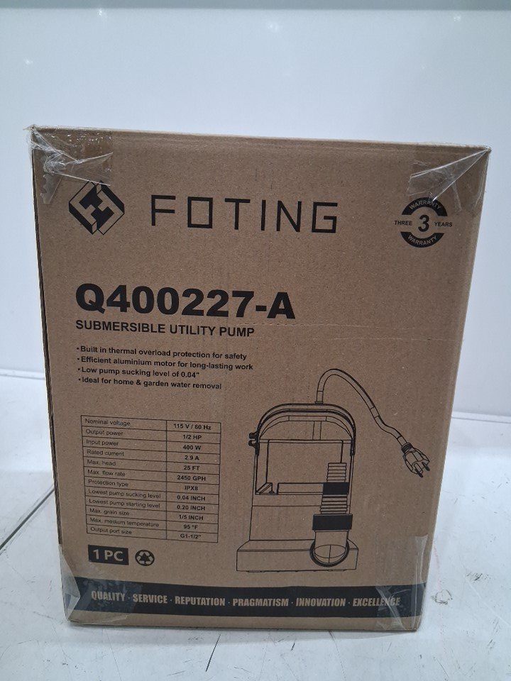 FOTING Thermoplastic Portable Submersible Water Sump Pump - 1/2HP - 2450GPH - 25FT LIFT HEIGHT - 2.9AMP - 16FT CORD - BLUE/BLACK (MODEL: Q400227-A)