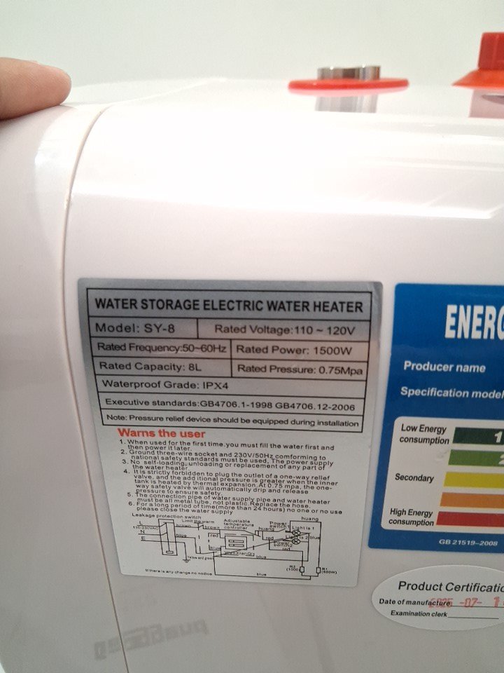 Mini Instant Electric RV Water Heater - 110V - 2.5 Gallon - White (MODEL : SY-8)