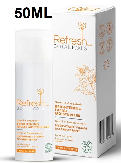 Refresh Botanicals Brightening Facial Moisturizer - Certified Organic Face Cream with Vitamin C - For All Skin Types - 50ML