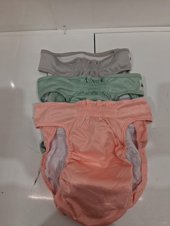 3PK AVONT SUPER ABSORBANT WASHABLE FEMALE DOG DIAPERS - EXTRA LARGE (25"-35") - green/pink/grey