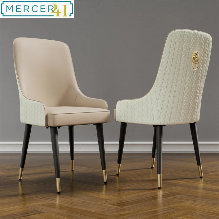 2PK MERCER41 ABAGAYLE LEATHER UPHOLSTERED ARMCHAIR DINING CHAIRS - LIGHT KHAKI, BEIGE