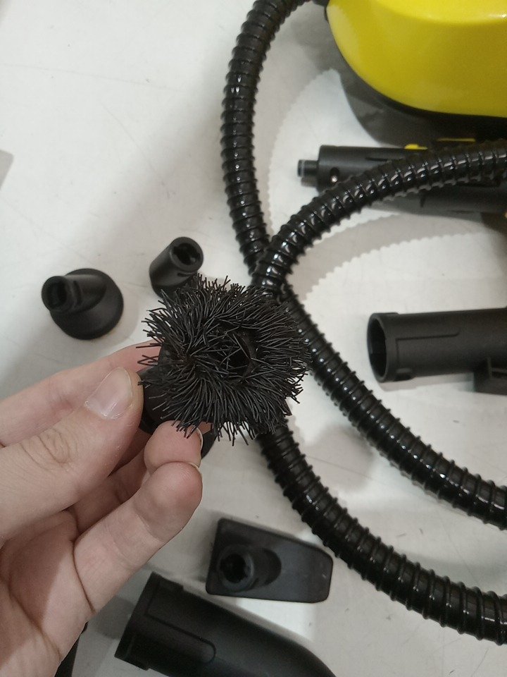 One of the smaller attachments is flattened out, likely from previous use. Tested for power only.
