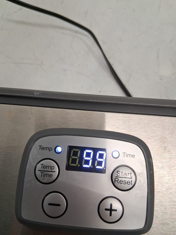 The has light marks of previous use. Also missing lid and bowls. Tested for basic power only.