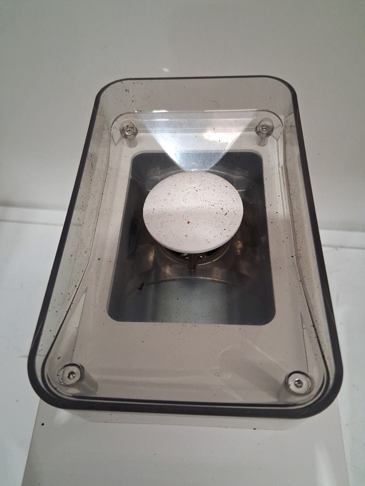please note that the item has signs of heavy use - there is beans and grinds inside the item - it was tested for power- the scoop and the scoop and extra blades are missing - see photos