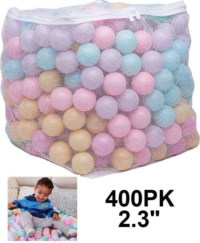 400pk Amazon Basics BPA Free Crush-Proof Plastic Ball, Pit Balls with Storage Bag - 2.3" - 6 pastel colors