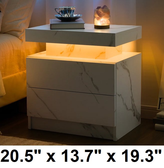 orren ellis night stand with led lights - 20.5" x 13.7" x 19.3" - marble white (model: a02-4)