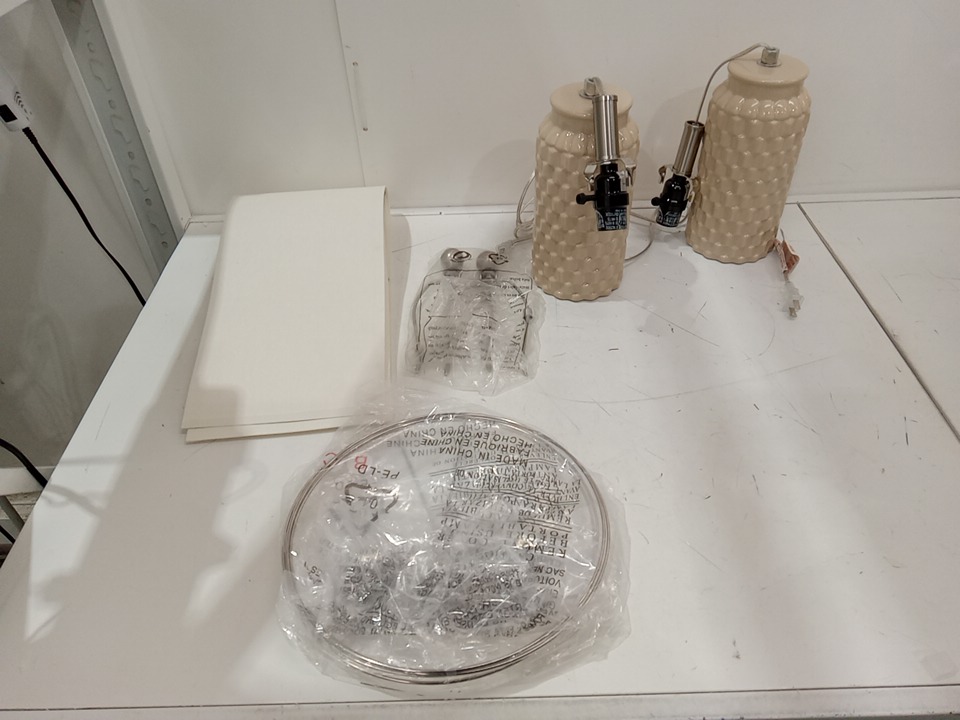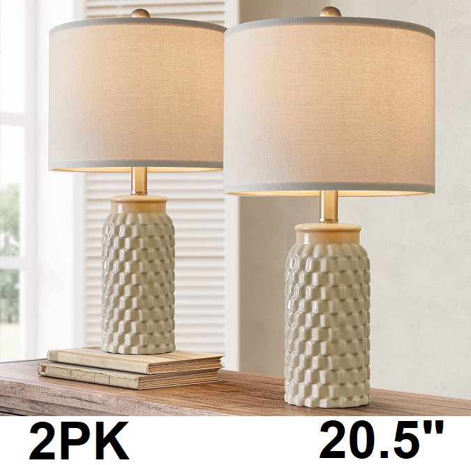 2PK USumkky Modern Ceramic Table Lamp - Beige (Model: AMZ-T1092CR)