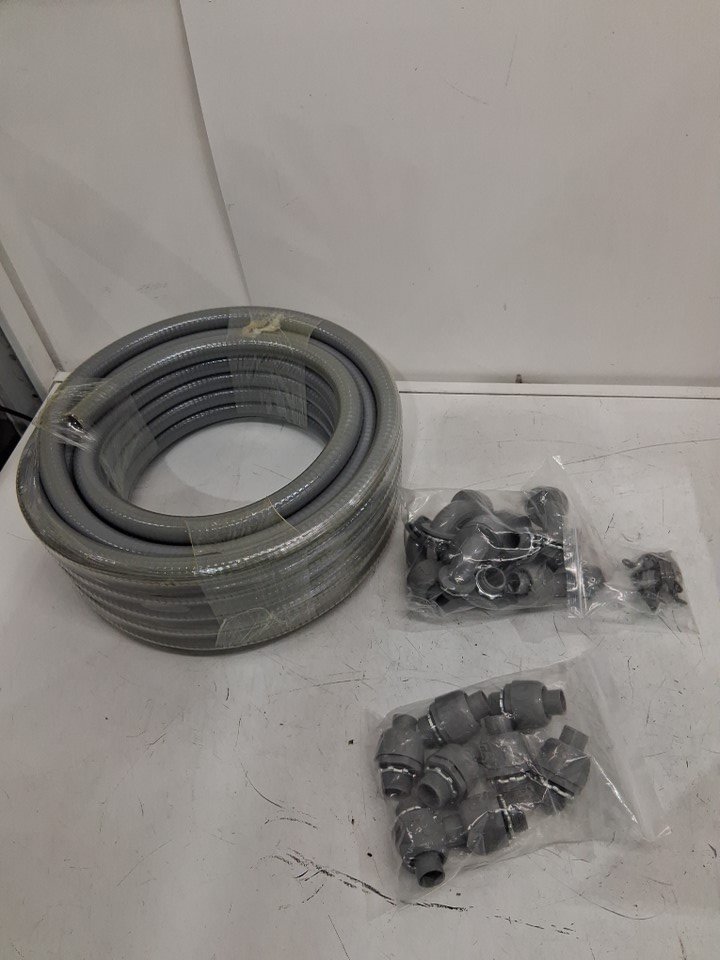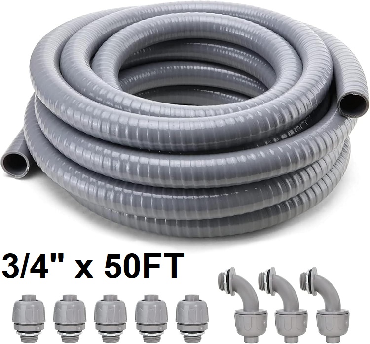 dwale Liquid-Tight Conduit and Connector Electrical Conduit Kit with Straight and Angle Fittings - 3/4" x 50ft - grey (model: ‎KQDG-055)