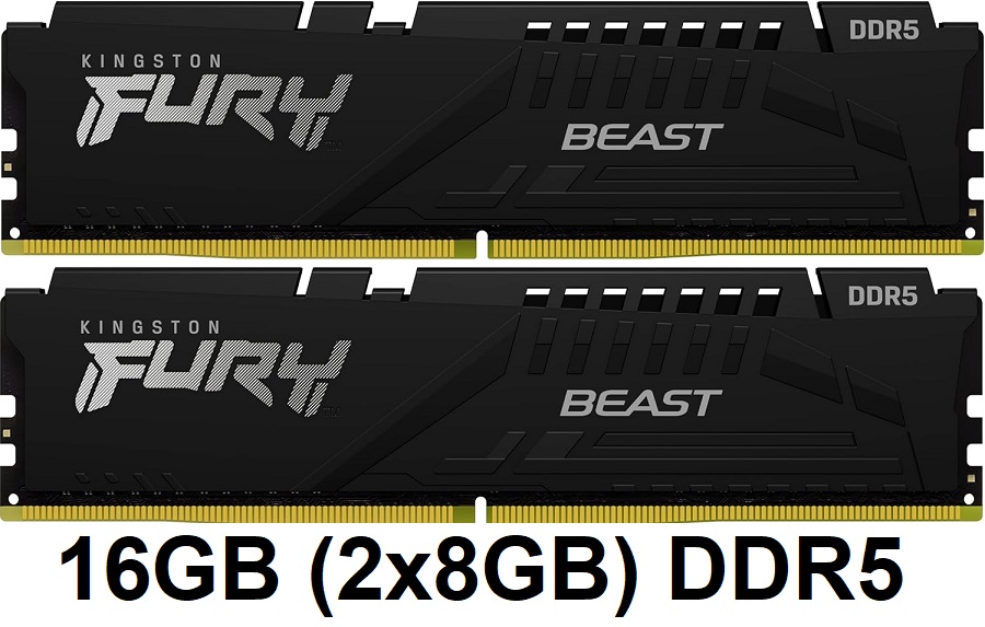 Kingston Fury Beast Black 16GB 6000MT/s DDR5 CL40 XMP 3.0 Ready Computer Memory (Kit of 2) KF560C40BBK2-16