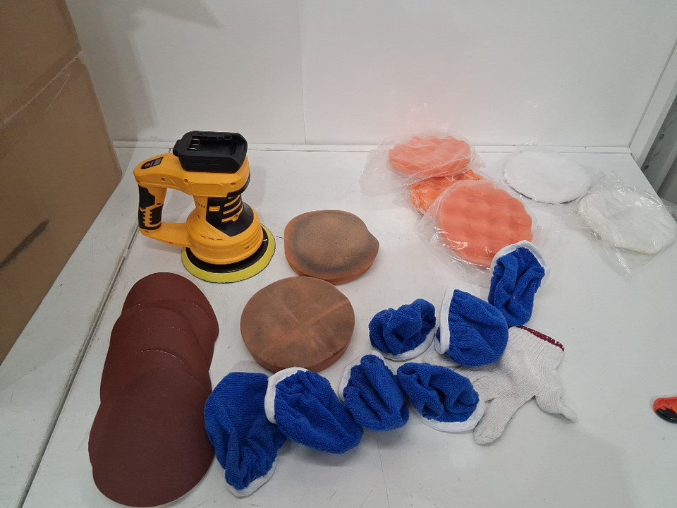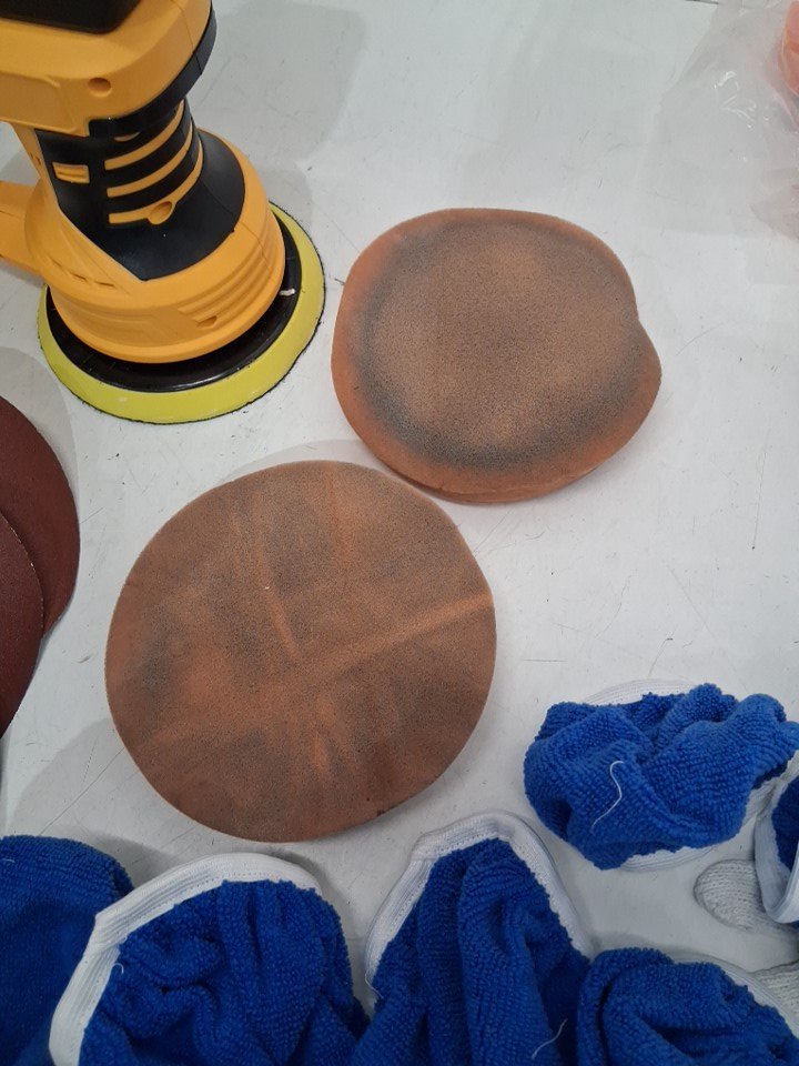 2 out of 3 sponges are visibly used, and 1 blue polisher is missing.