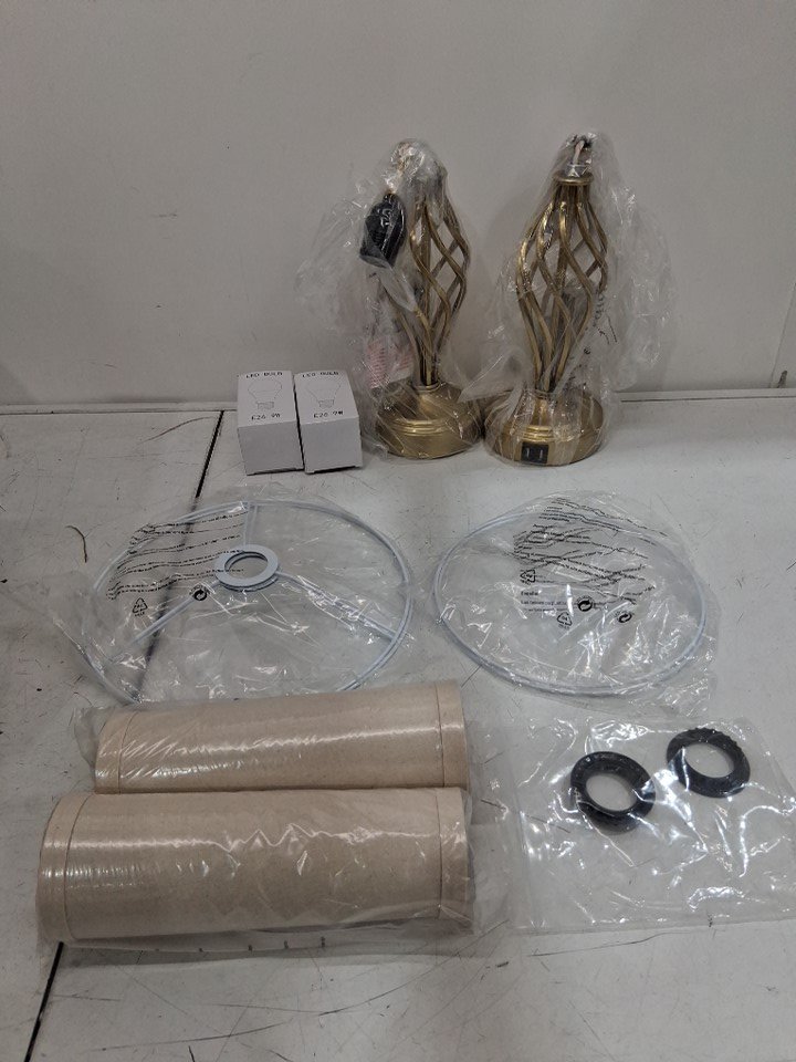 2PK 3-WAY DIMMABLE TOUCH CONTROL TABLE LAMPS WITH FABRIC SHADE AND LIGHT BULBS - GOLD/WHITE