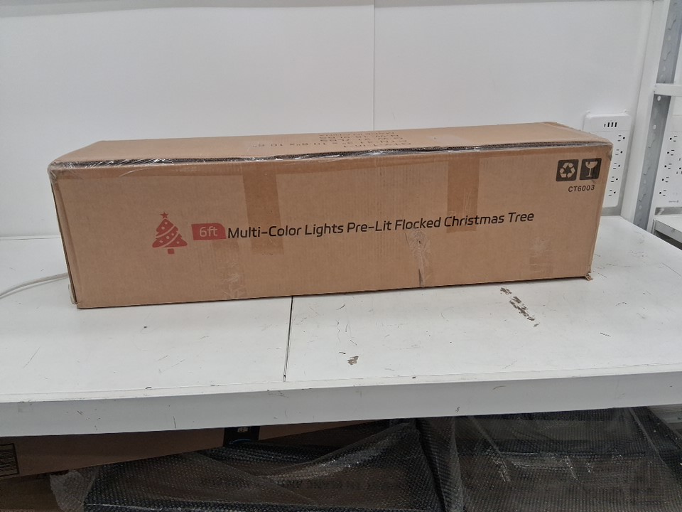 Pre-Lit Flocked Snow Hinged Artificial Christmas Tree - 6FT - WHITE/GREEN (Model: CT6003)