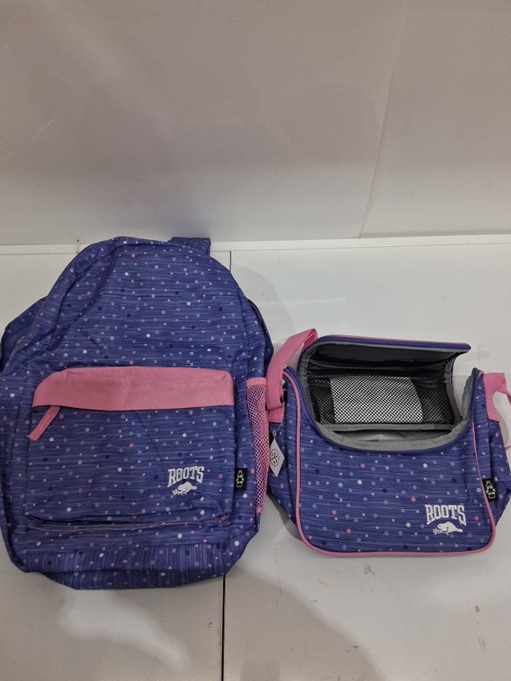 2PC KID'S ROOTS BACKPACK SET W/ PENCIL CASE - MADE WITH RECYCLED BOTTLES - PURPLE/PINK