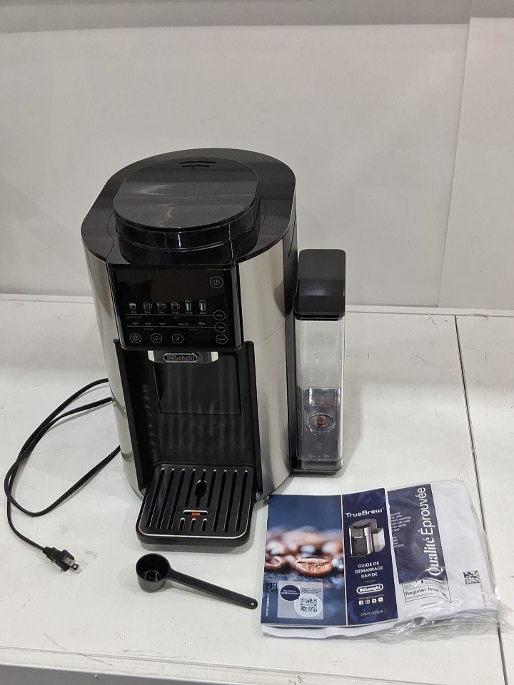 This item will not be eligible for our warranty unless the machine was descaled & cleaned using the manufacturer's instructions. If you require additional time for our warranty in order to clean these machines, please reach out to us before your specified warranty deadline. **Due to the high sensitivity and frequent upkeep of operation on these units, additional cleaning may be required. If not descaled with model specific cleaning product, the units may become clogged and will cause potential operational issues. Please refer to the manufacturer's operations manual for detailed cleaning instructions.** **Tested for power.** Item has significant coffee grounds debris throughout machine, some beans left in the hopper, minor scuffs/markings along the exterior, residue markings on the drip tray from previous use, see photos. Item does not include a water hardness test strip, see photos. *GENERIC CONDITION STATEMENT* This item has been handled/inspected, tested if needed by our listing staff to the best of their ability/knowledge and for an unknown reason arrived to our facility with an issue. This issue can either be a very minor/major cosmetic issue which most likely occurred during shipping such as a dent, indent, scuff, stain, scratch or nick. If not a cosmetic issue, it can be a function issue with the item itself or there could be certain parts missing to make the item complete from how it is sold originally. (See lister notes and photos attached of the issue stated as well as packaging condition).