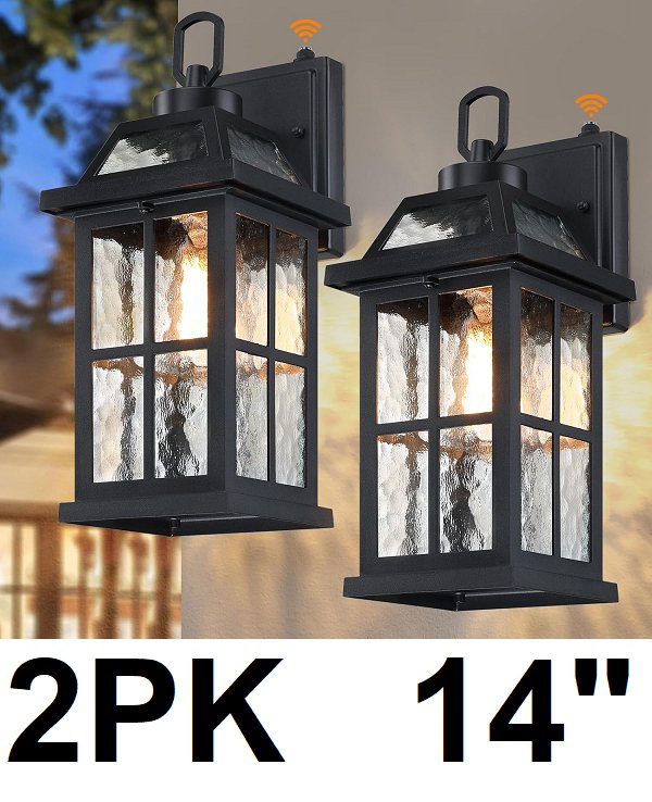 2pk dusk to dawn light sensing outdoor house light waterproof sconce - 14" - black/clear (Model: WL321B)