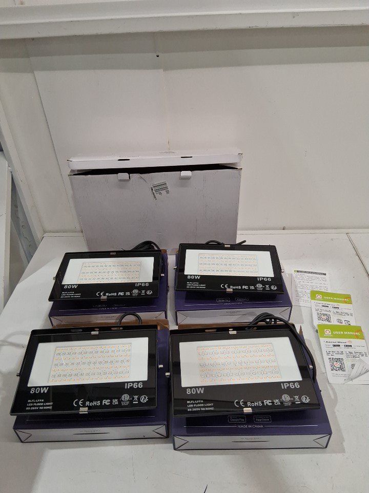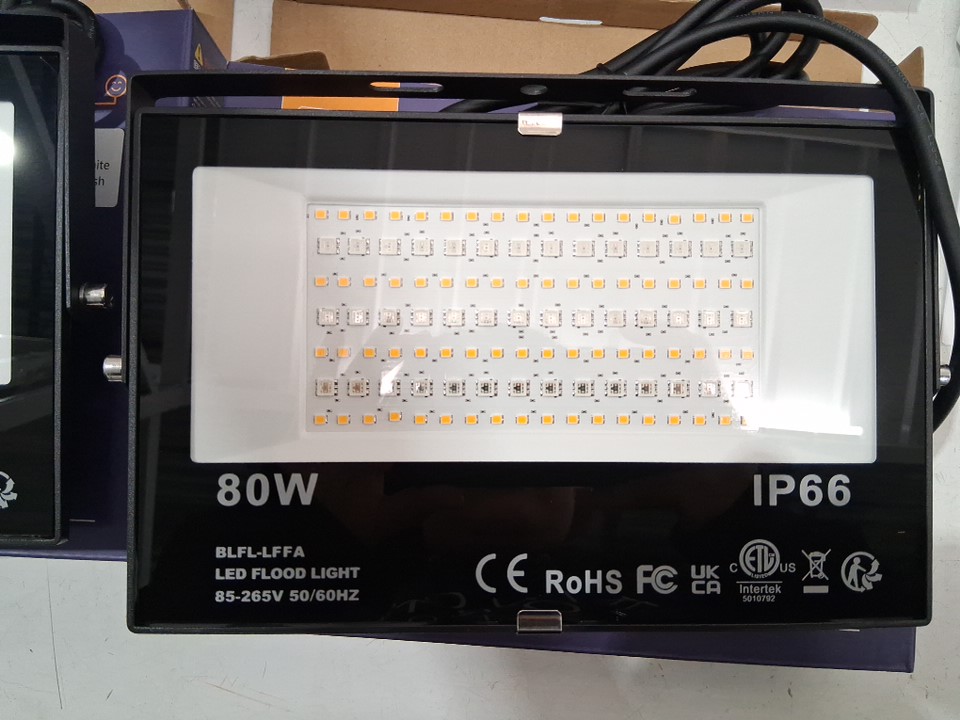4pk colour changing dimmable LED Flood Lights with bluetooth compatibility - 800w - 2700k - black (model: blfl-lffa)