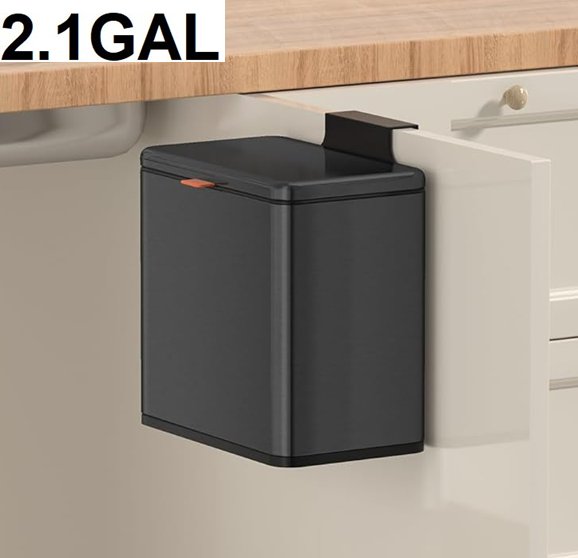 mbillion hanging trash can with lid - 2.1gal - black (model: mb-6601)