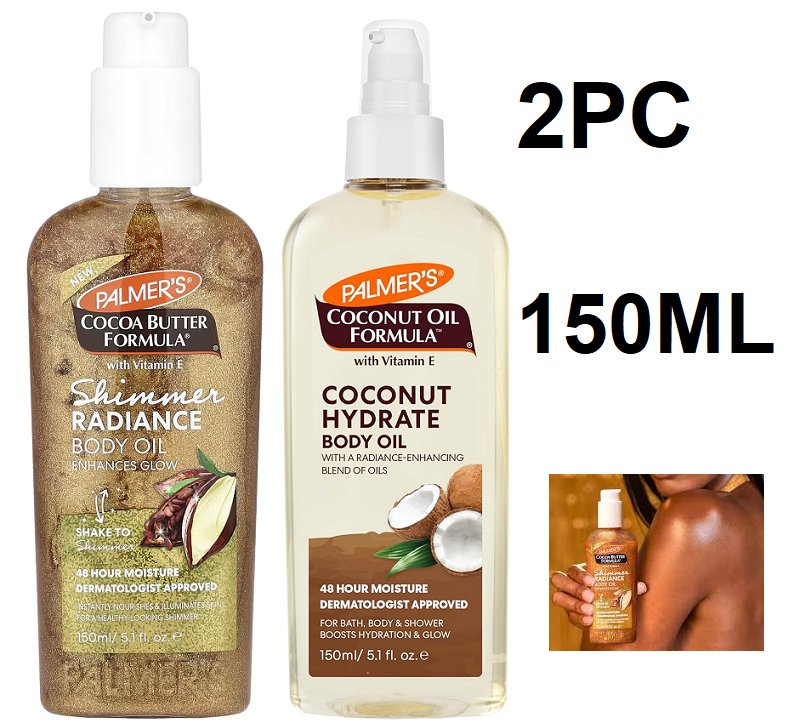 2PC PLAMER'S COCONUT OIL FORMULA SHIMMER RADIANCE BODY OIL & COCONUT HYDRATE BODY OIL - 150ML EACH