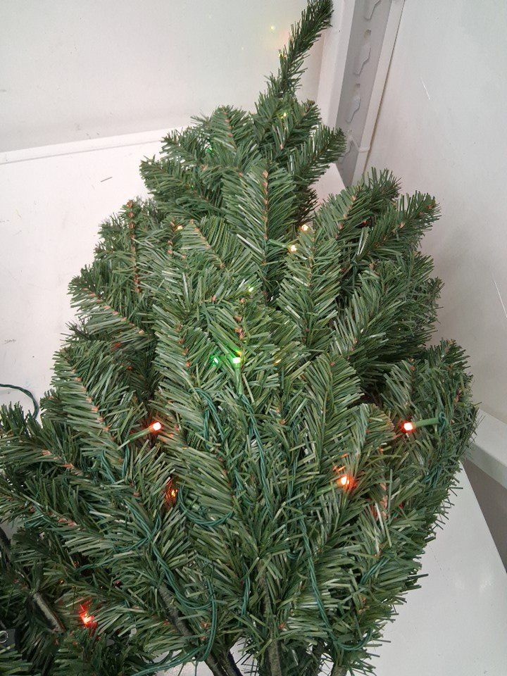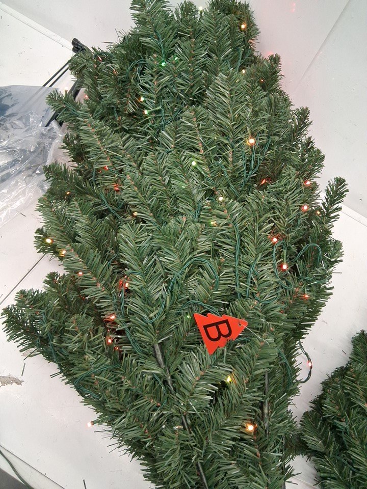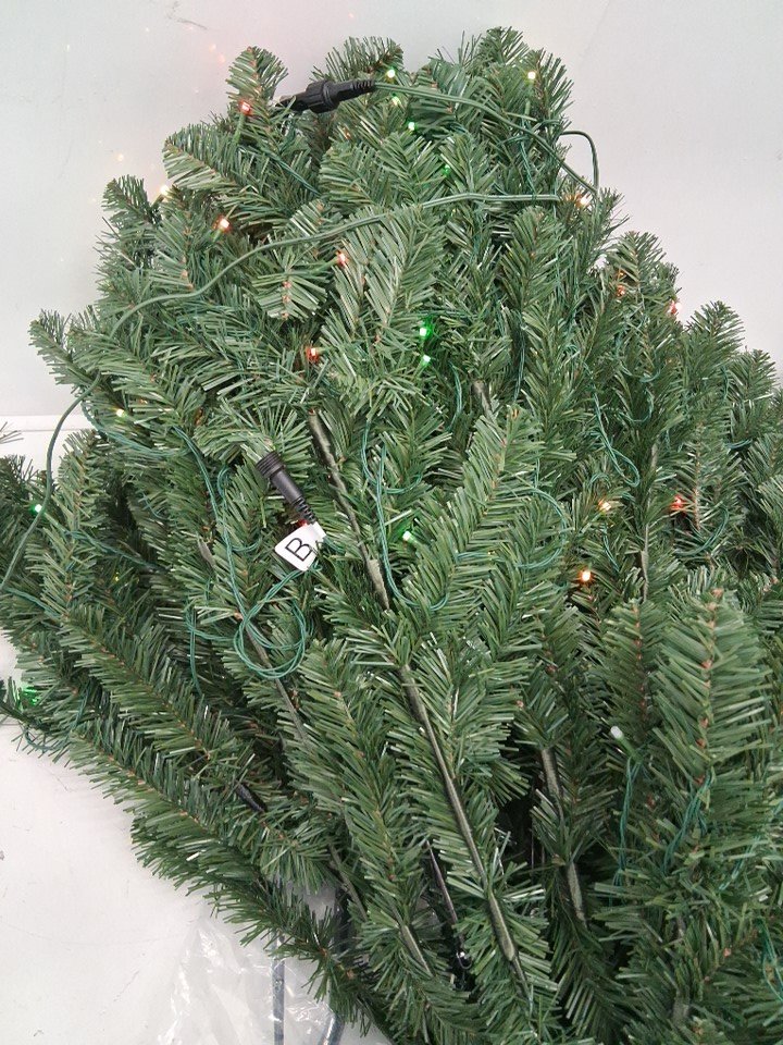 SHareconn prelit artificial hinged christmas tree with warm white lights, foldable branches and metal stand - 7.5ft - green