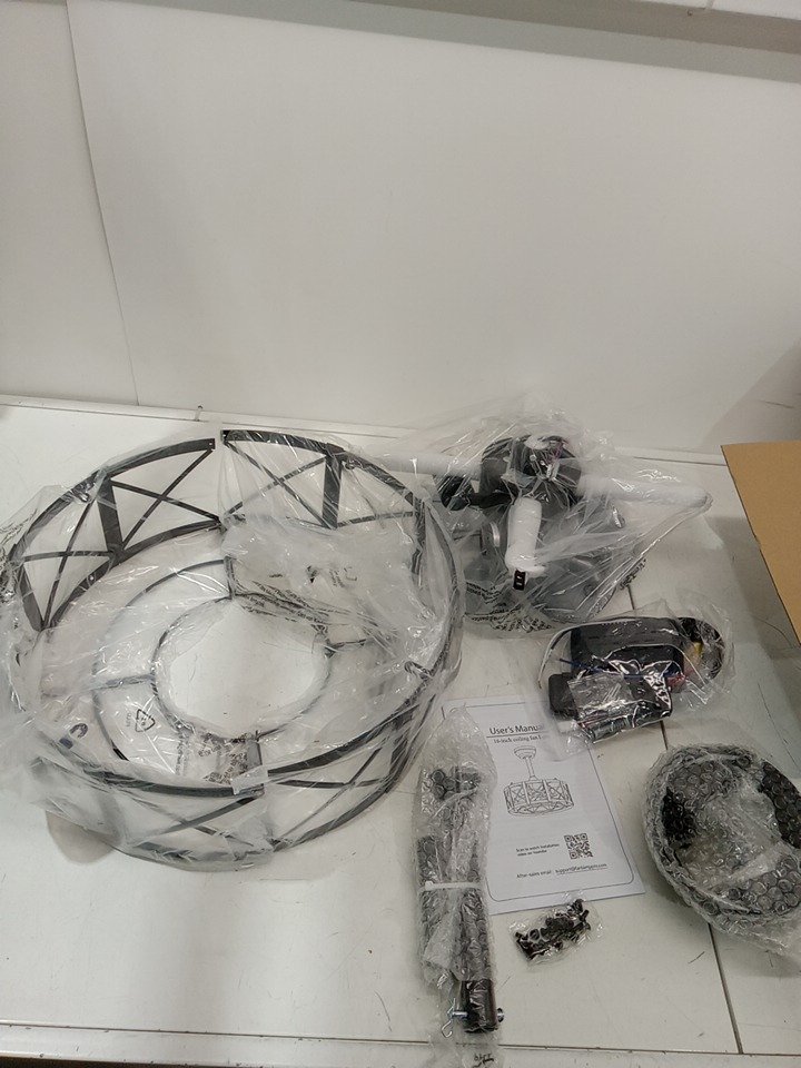 indoor outdoor x-cage small ceiling fan with light sockets and remote - 16" - Black (Model: y23fsd0044-1801ac)