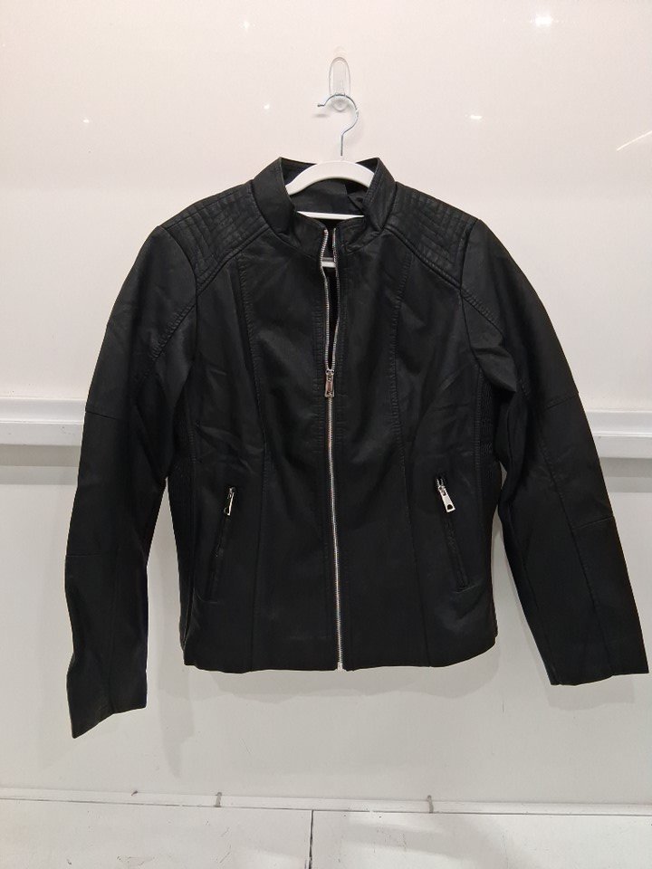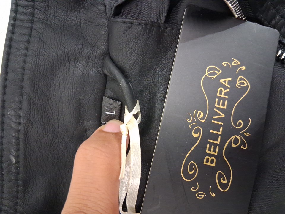 women's bellivera Faux Leather Motorcycle Zipper Bomber jacket - large - black