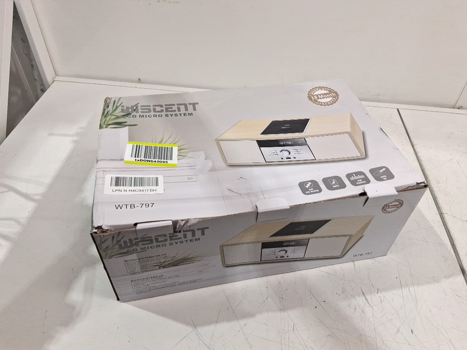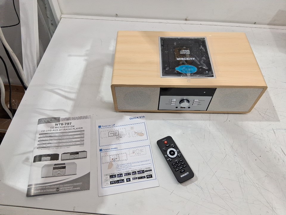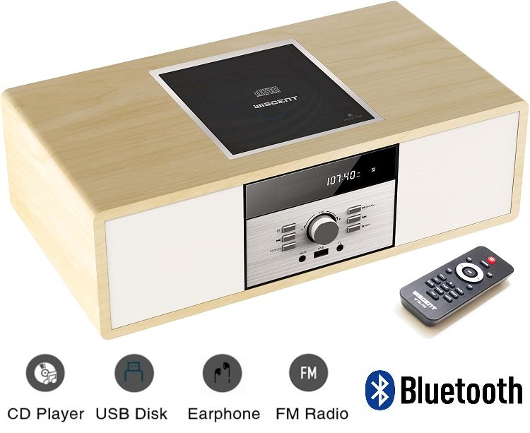 WISCENT STEREO SYSTEM FOR HOME VINTAGE MICRO HIFI SYSTEMS CD PLAYER WITH BLUETOOTH FM RADIO USB AUX - light wood (MODEL: WTB-797)