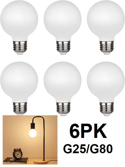 6PK UNBRANDED led Milky Glass globe bulb - g25/g80 - warm white