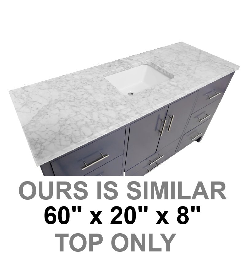 Marble Vanity Top in White with Rectangle Bowl - 60" x 20" x 8" (Model: HEBRBC)