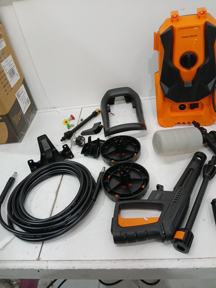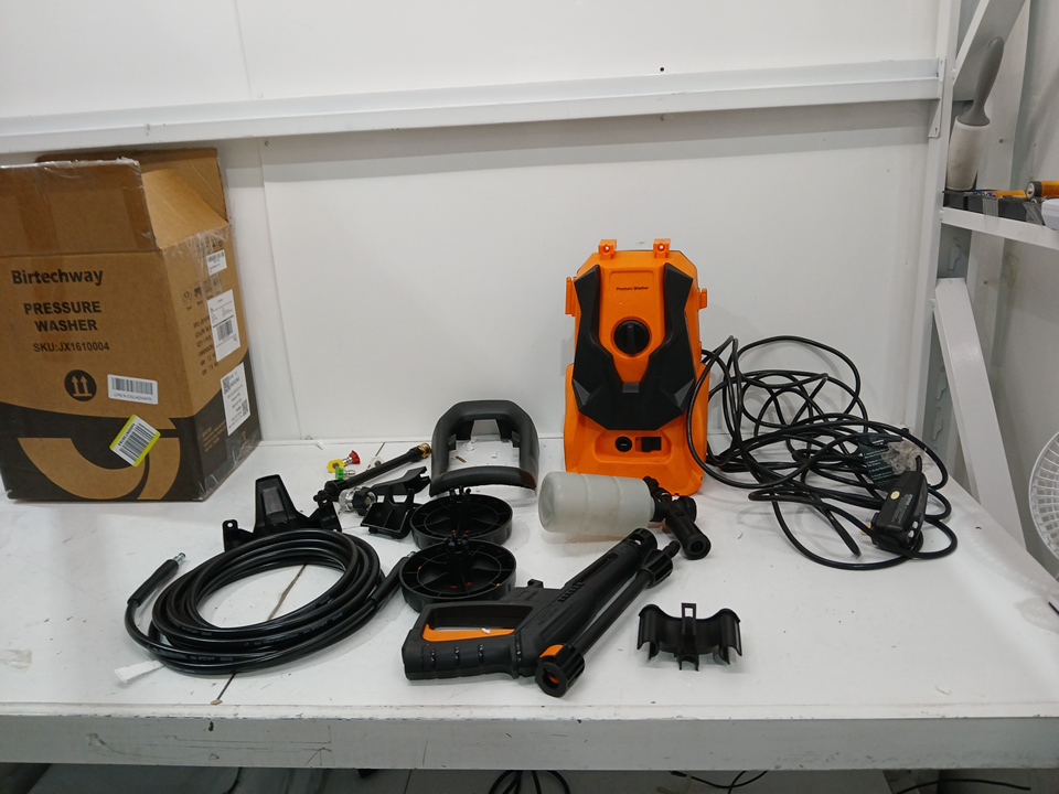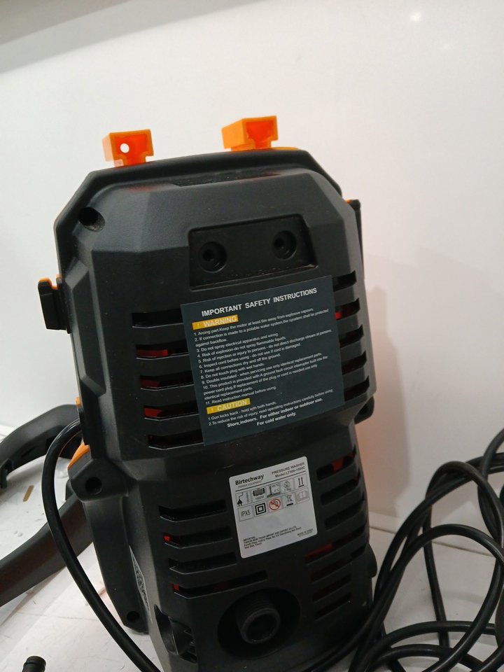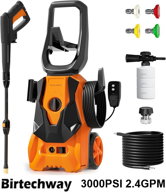 BIRTECHWAY Electric Pressure Washer with Adjustable Snow Foam Cannon and 4 Quick Connect Nozzles - 3000 PSI 2.4GPM - BLACK/ORANGE (MODEL: JX1610004)