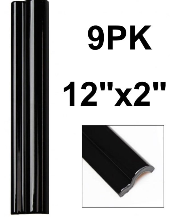 9PK Catalina Ceramic Quarter Round Tile Trim - 12" x 2" - BLACK