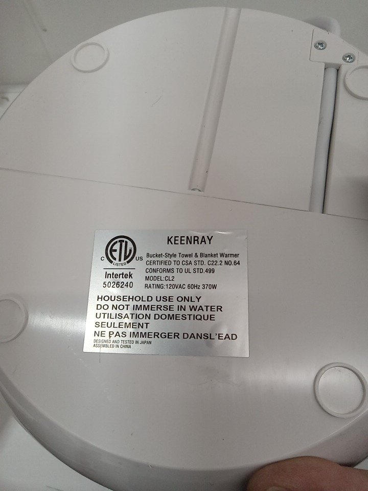KEENRAY LUXURY BUCKET TOWEL WARMER WITH AUTO SHUT OFF - FITS x2 OVERSIZED 40" x 70" TOWELS - white (MODEL: CL1)