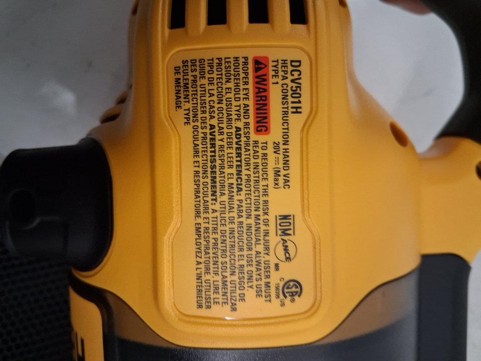 DEWALT CORDLESS HANDHELD VACUUM *TOOL ONLY* - 20V - YELLOW - (MODEL: DCV501HB)