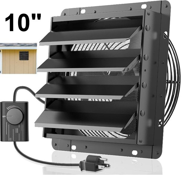 Kiwdzfu wall mounted shutter exhaust fan for ventilation - 10" - Black