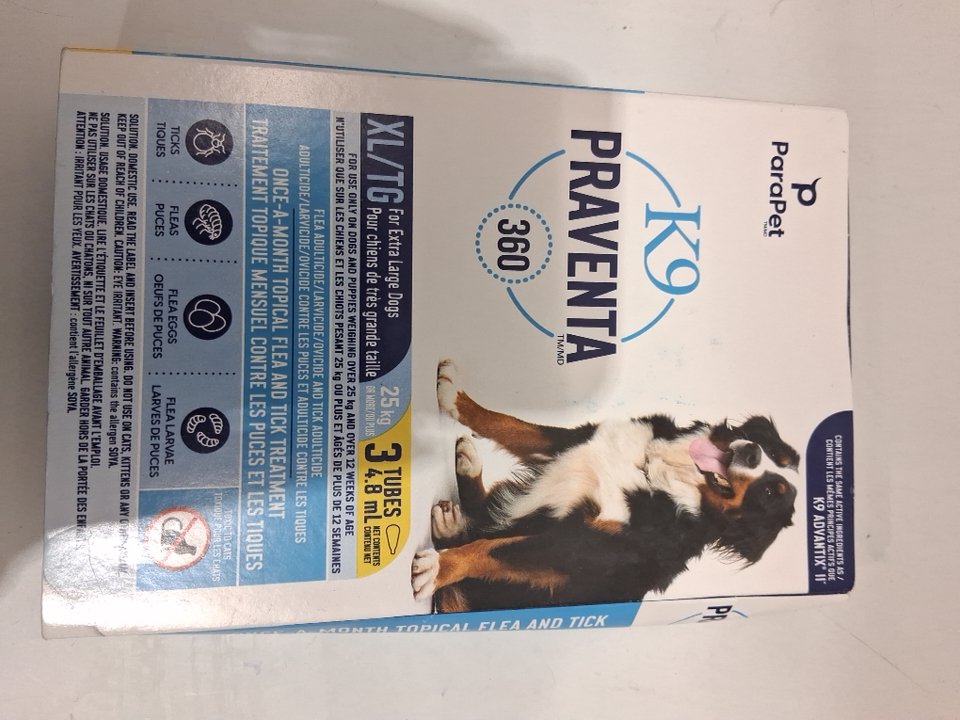 (3 DOSE) PARAPET K9 PRAVENTA 360 ONCE-A-MONTH TOPICAL FLEA AND TICK TREATMENT FOR DOGS - FOR EXTRA LARGE DOGS (25KG+) - 4.8ML