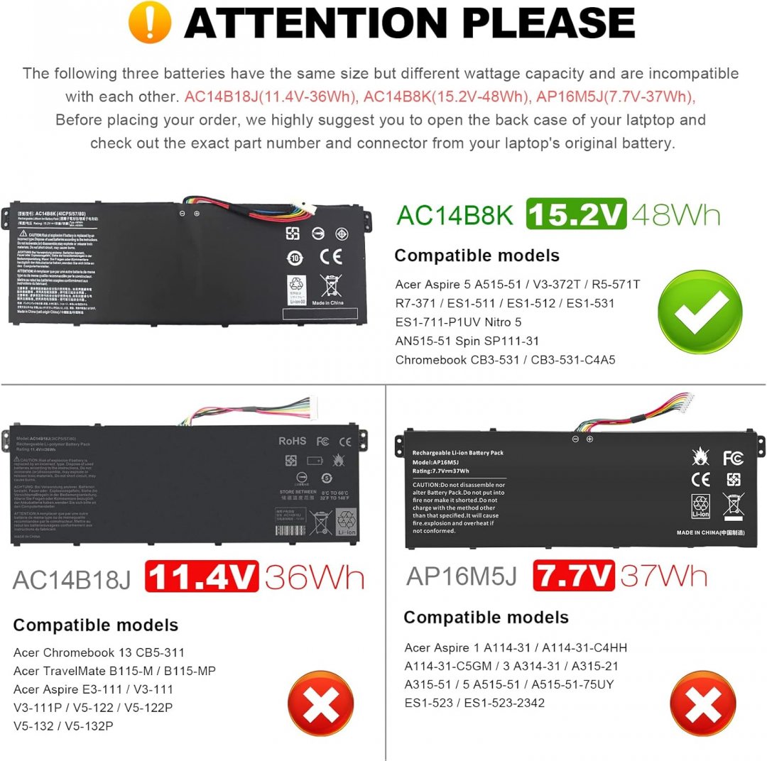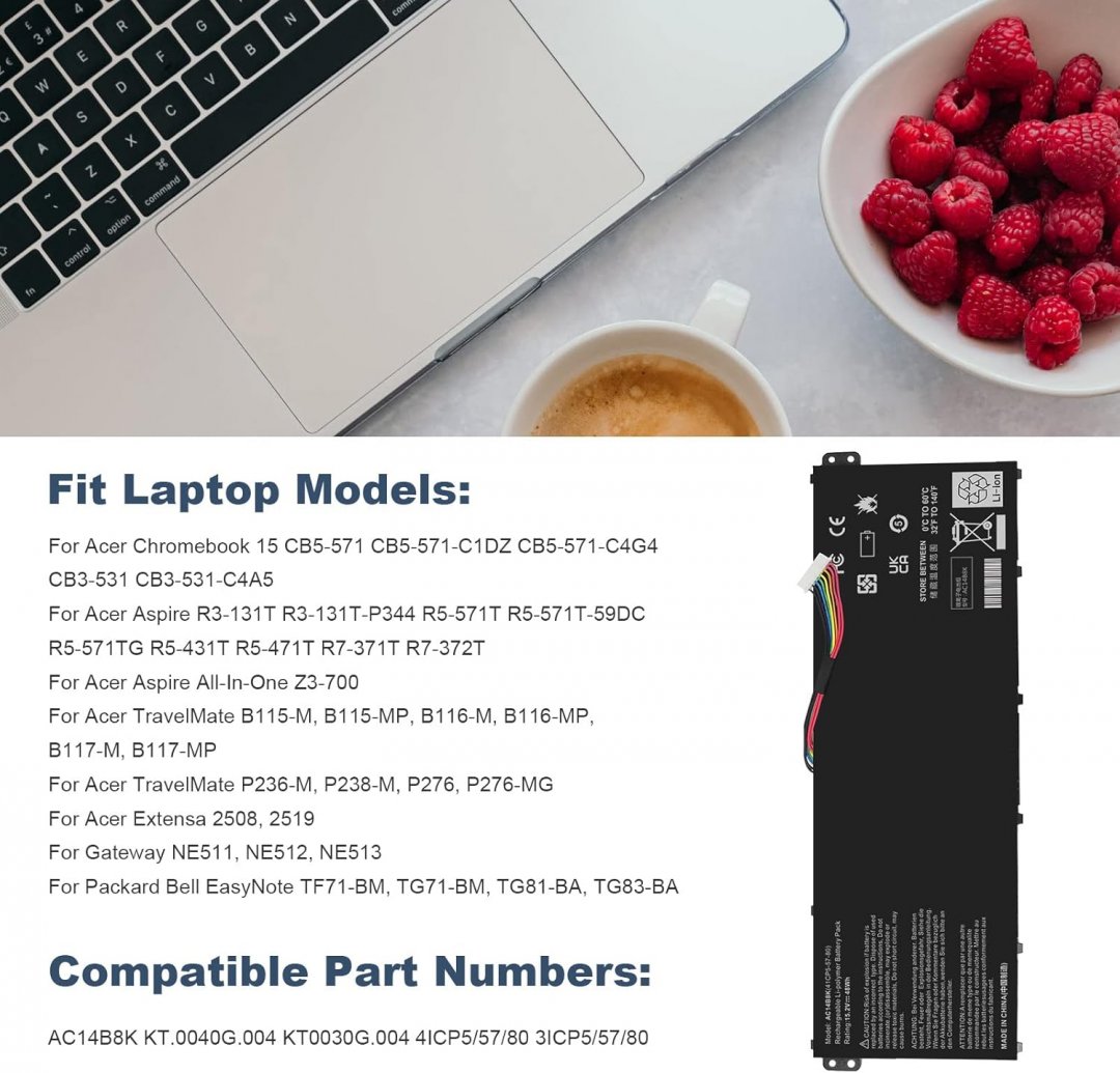 TREE.NB Replacement Battery - Compatible WITH VARIOUS ACER / ASPIRE / CHROMEBOOK / TRAVELMATE MODELS (MODEL: AC14B8K )