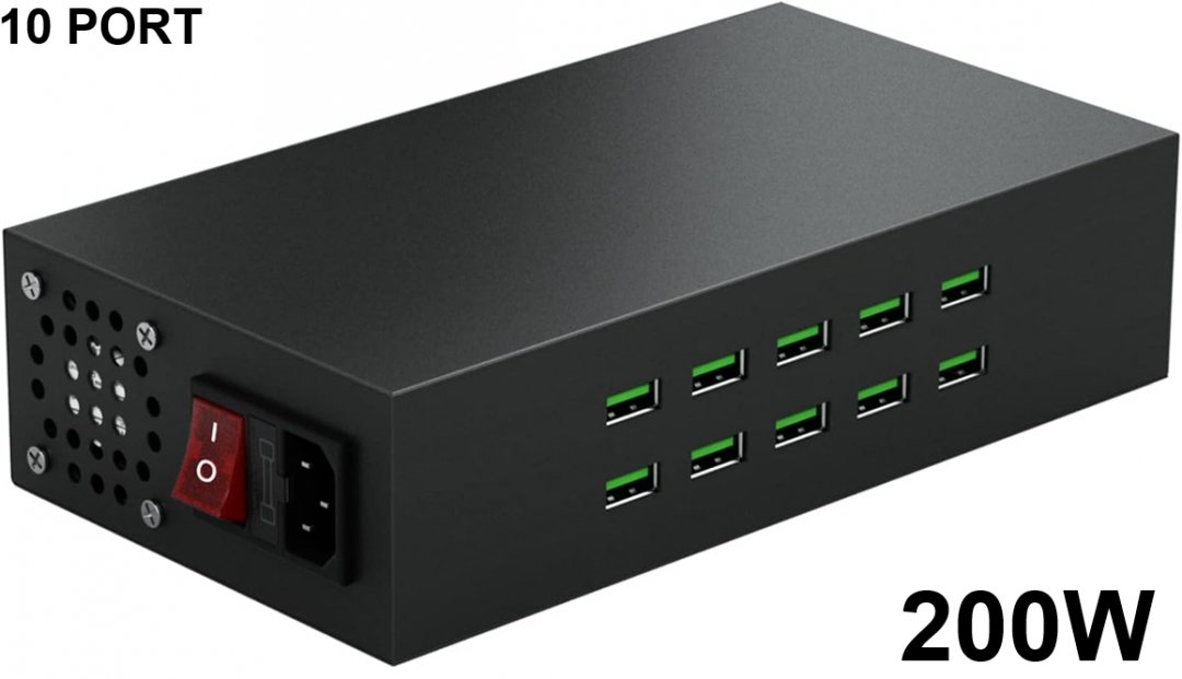 skazeke 10 port quick charge 3.0 fast usb charging station for smartphones and other electronics - 200w - black