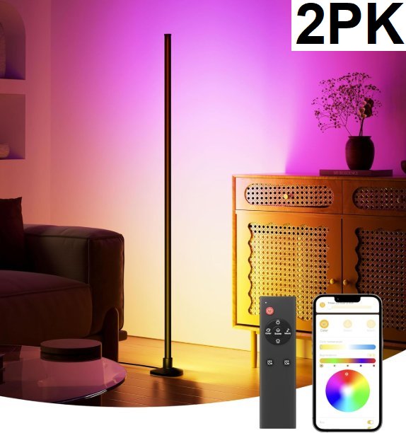FULEN FLOOR LAMP LED CORNER LIGHT FOR BEDROOM WITH SMART APP CONTROL - RGB COLOUR CHANGING WITH MUSIC SYNC - BLACK (MODEL: FL01)